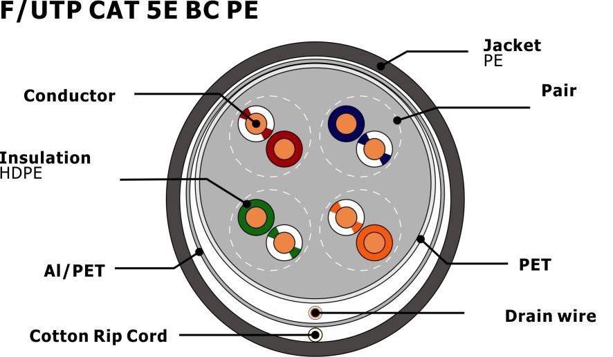 Scudo: FTP, coppia tortuosa blindata Nome del prodotto: F/UTP CAT5E